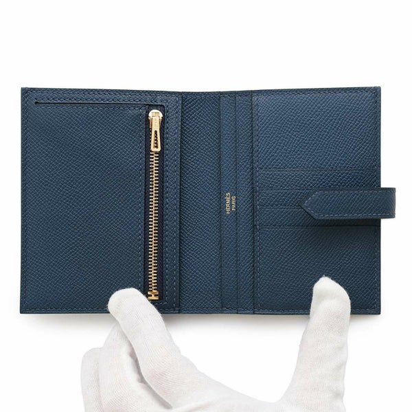 5. エルメス 二つ折り財布 ベアンコンパクト ブルードプリュス/ゴールド金具 エプソン W刻印