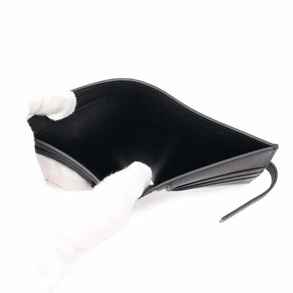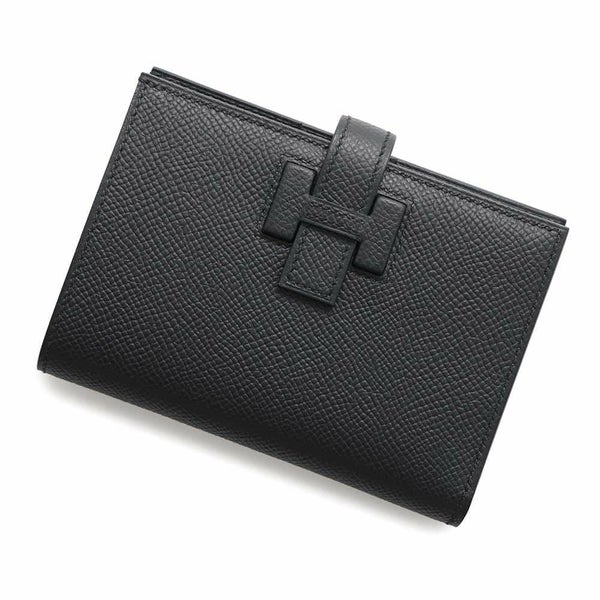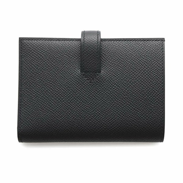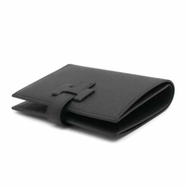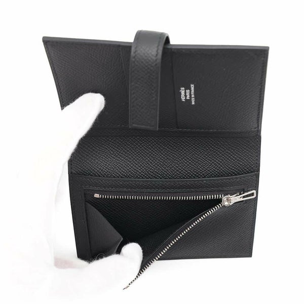 5. エルメス 二つ折り財布 Hパッサン コンパクト ブラック/シルバー金具 エプソン W刻印 HERMES 財布 黒