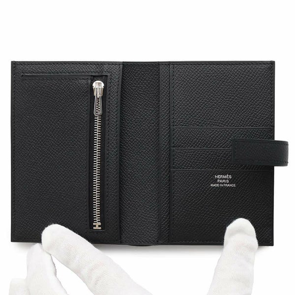 エルメス 財布 ◆新品◆ エルメス 財布 HERMES WALLET エルメス 二つ折り財布 Hパッサン コンパクト ブラック/シルバー金具 エプソン W刻印 HERMES 財布 黒
