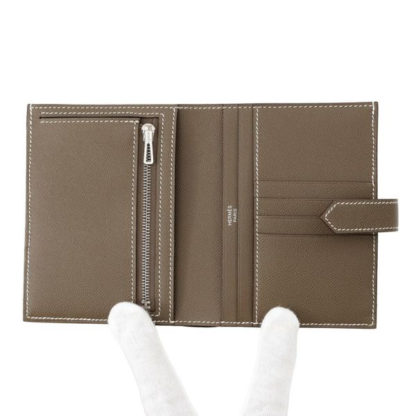 5. エルメス 二つ折り財布 ベアンコンパクト エトゥープ/シルバー金具 ヴォーマダム K刻印 HERMES 財布