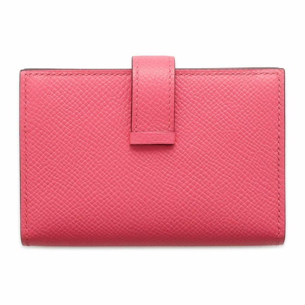 5. エルメス カードケース ベアン ミニ ローズアザレ/シルバー金具 ヴォーエプソン W刻印 名刺入れ