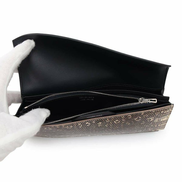 5. エルメス 長財布 パッサンロング オンブレ ブラック/シルバー金具 エバーグレイン/リザード C刻印 HERMES 財布 黒 ソルド品 安心保証
