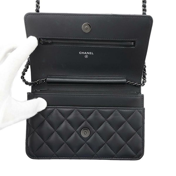 5. シャネル チェーンウォレット マトラッセ ココマーク ラムスキン AP0250 CHANEL 財布 黒 安心保証