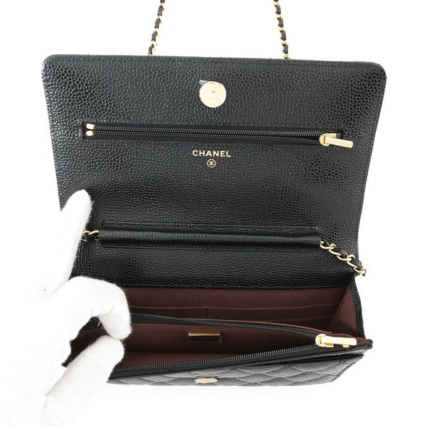 シャネル チェーンウォレット クラシック マトラッセ ココマーク キャビアスキン AP0250 CHANEL 財布 黒 安心保証