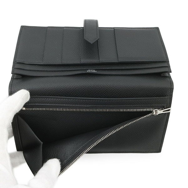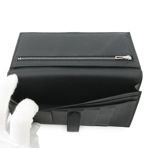エルメス 長財布 ベアンスフレ ブラック/シルバー金具 エプソン Y刻印 HERMES 財布 黒 安心保証
