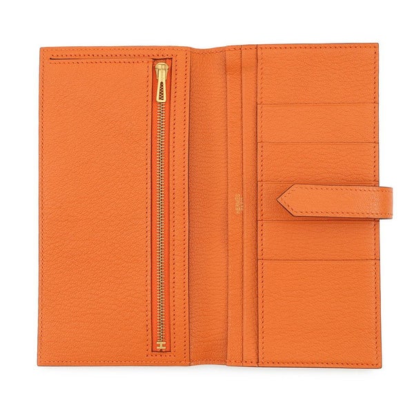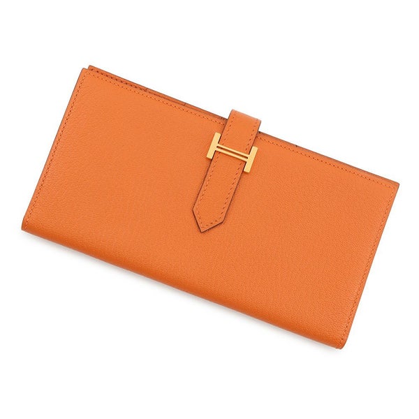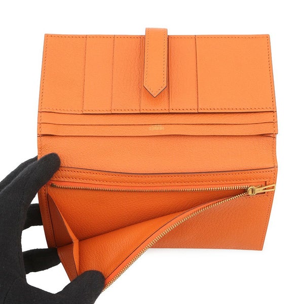 5. エルメス 長財布 ベアンスフレ オレンジ/ゴールド金具 シェブルミゾル □J刻印 HERMES 財布 安心保証