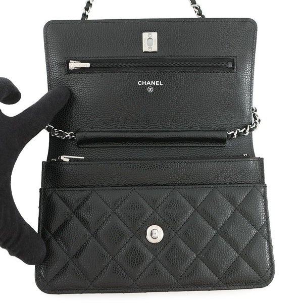 5. シャネル チェーンウォレット マトラッセ ココマーク キャビアスキン AP4241 CHANEL 財布 黒 安心保証