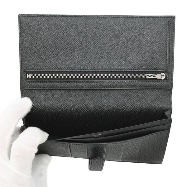 5. エルメス 長財布 ベアンスフレ ブラック/モノクローム金具 エプソン W刻印 HERMES 財布 黒