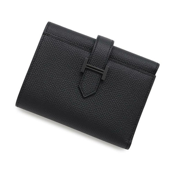 5. エルメス 三つ折り財布 ベアン コンビネ ブラック/ブラック金具 エプソン U刻印 HERMES 財布 黒