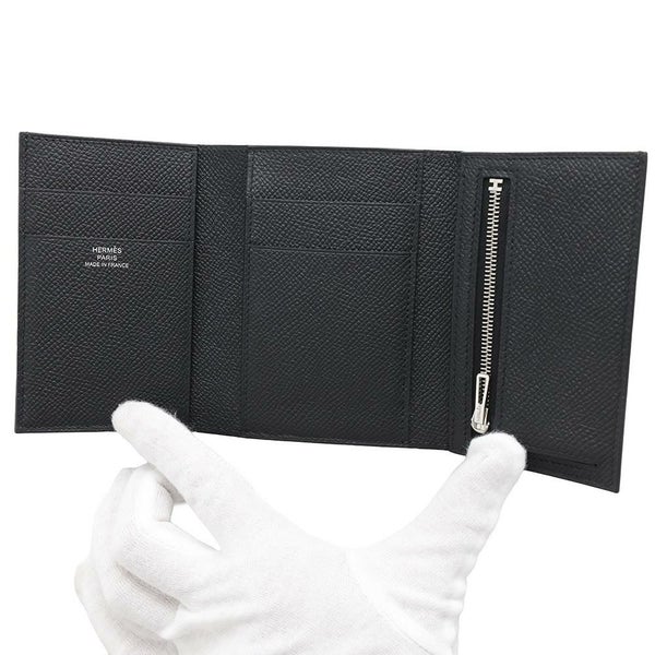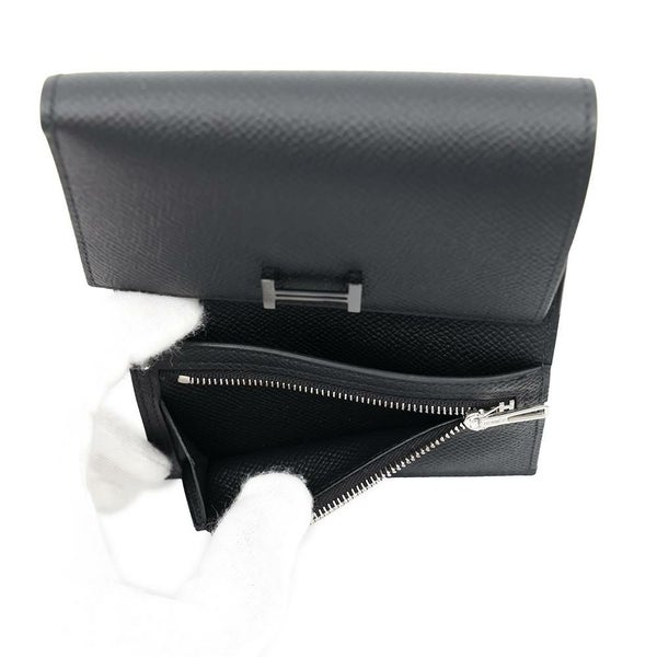 6. エルメス 三つ折り財布 ベアン コンビネ ブラック/ブラック金具 エプソン U刻印 HERMES 財布 黒