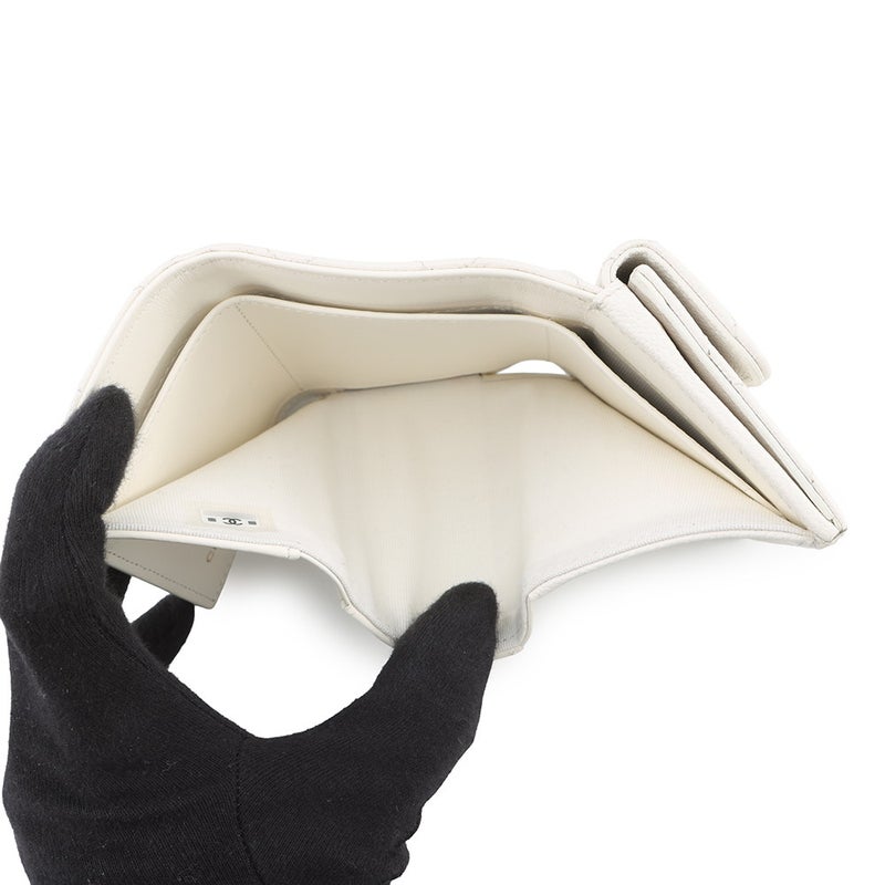 他の画像を見る NEW 中古S 翌日配送可能 店舗お取り寄せ対象 送料無料 無料ラッピング カートに入れる お気に入りに登録する シャネル 三つ折り財布 マトラッセ ココマーク クラシック スモール フラップ ウォレット キャビアスキン AP0230 CHANEL 財布 白 安心保証 オンライン価格 ¥ 138,000 税込