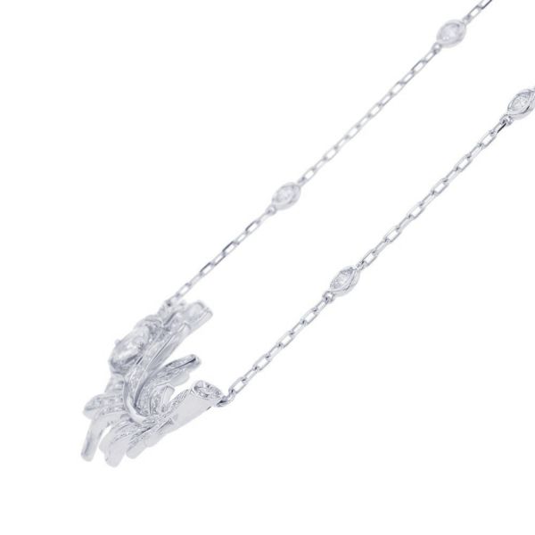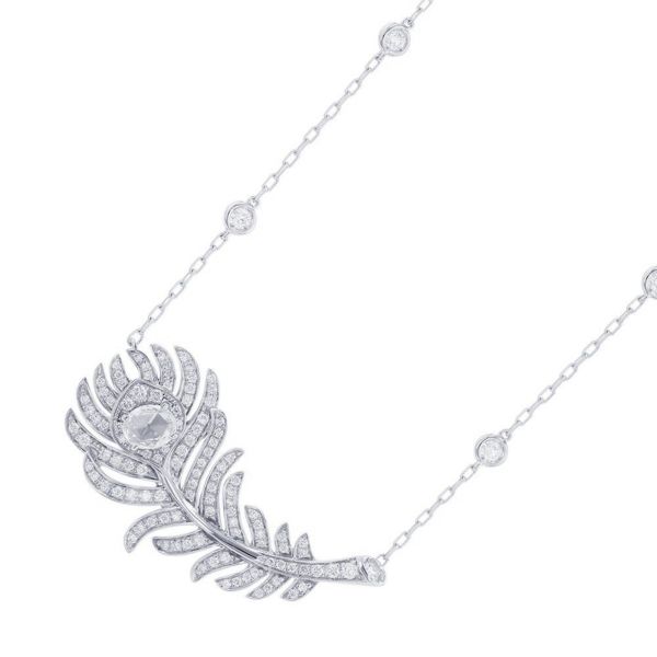 4. ブシュロン ネックレス プリュム ドゥ パオン ペンダント スモール ダイヤ ローズカット 1P 計0.31ct/ラウンドカット 118P 計0.66ct K18WG 安心保証