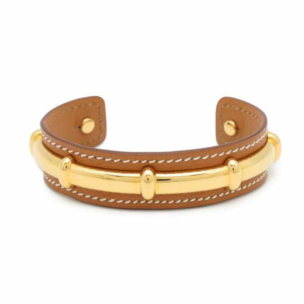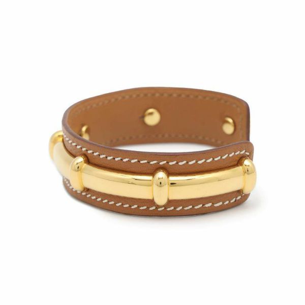 4. エルメス ブレスレット アガタ ゴールド/ゴールド金具 レザー □D刻印 サイズM HERMES アクセサリー 安心保証