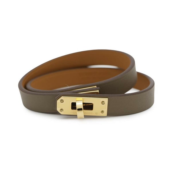 4. エルメス ブレスレット ミニ・ケリー・ドゥブルトゥール エトゥープ/ゴールド金具 スイフト U刻印 サイズT2