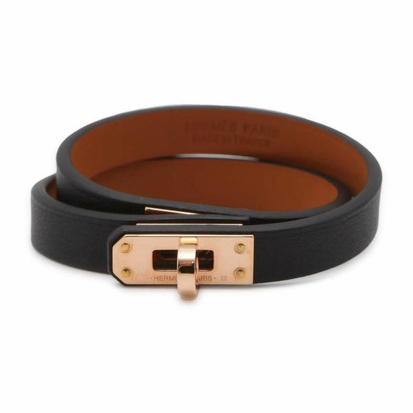 4. エルメス ブレスレット ケリー ドゥブルトゥール ブラック/ピンクゴールド金具 スイフト サイズT1 U刻印 黒 安心保証
