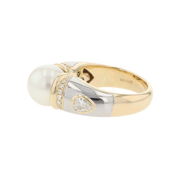 3. ブルガリ リング パッソ ドッピオ ダイヤモンド/あこや真珠 K18YGイエローゴールド サイズ約12号 BVLGARI 指輪 パール 真珠 安心保証