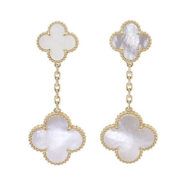 4. ヴァンクリ ピアス マジック アルハンブラ イヤリング 2モチーフ マザーオブパール K18YGイエローゴールド VCARD78800 安心保証