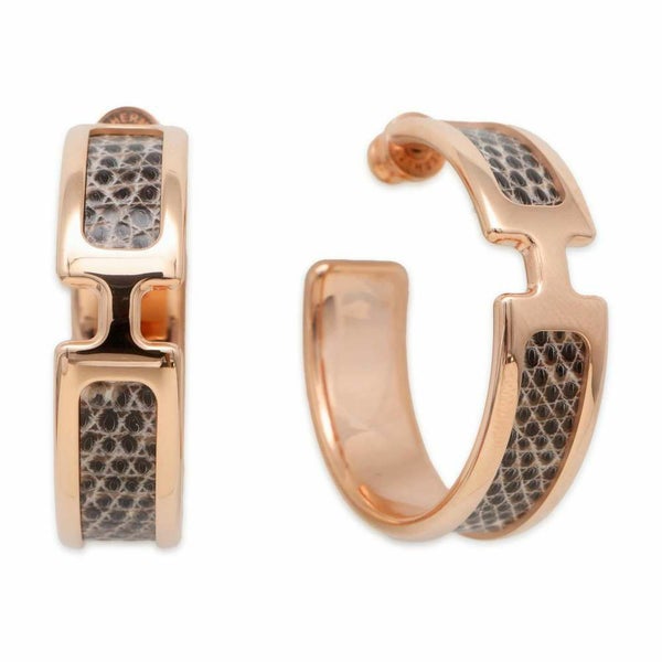 4. エルメス ピアス オランプ オンブル/ピンクゴールド金具 リザード/メタル HERMES アクセサリー