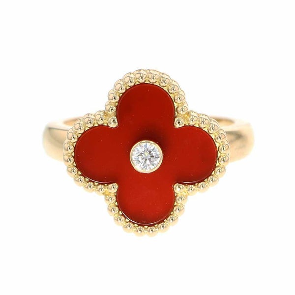 ヴァンクリ リング ◆新品仕上げ◆ ヴァンクリーフ&アーペル リング レディース 指輪 Van Cleef & Arpels ヴァンクリーフ&アーペル リング ヴィンテージ アルハンブラ カーネリアン ダイヤ 1P 0.05ct K18YG サイズ49 VCARD40800 安心保証