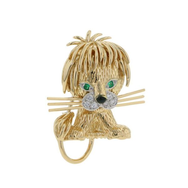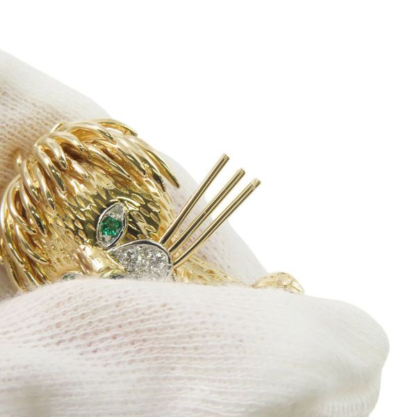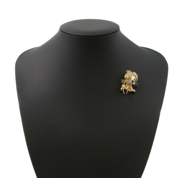 4. ヴァンクリーフ&アーペル ブローチ ライオン アニマル クリップ ダイヤモンド エメラルド オニキス K18YGイエローゴールド 動物 安心保証