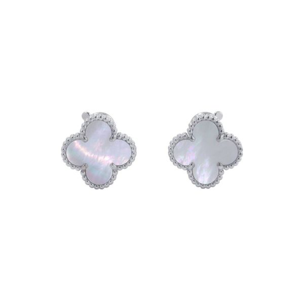 4. ヴァンクリーフ&アーペル ピアス ヴィンテージ アルハンブラ イヤリング マザーオブパール K18WGホワイトゴールド VCARF48600 安心保証