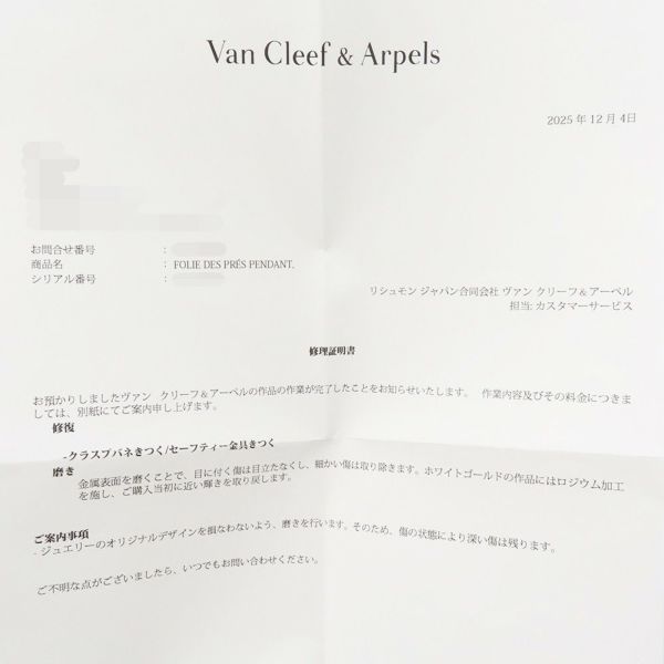 ※ヴァンクリーフ&アーペルにてクラスプバネとセーフティー金具をきつくしております。
