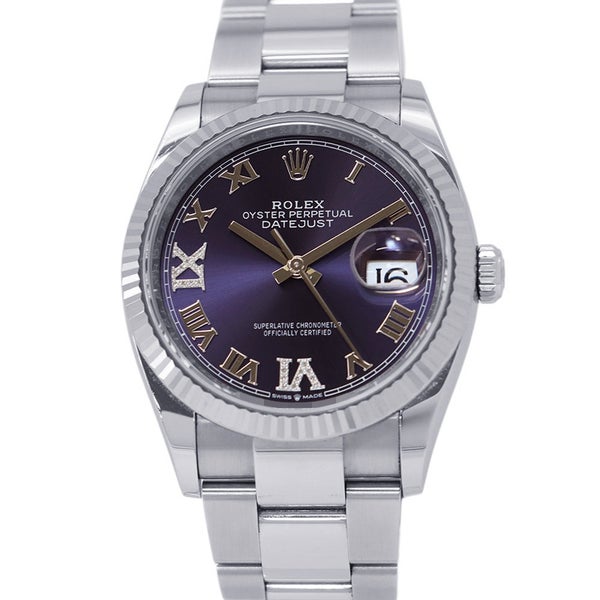 4. ロレックス デイトジャスト36 SS/K18WG ランダムシリアル ルーレット 126234 オーベルジーヌ文字盤 69ダイヤ 安心保証
